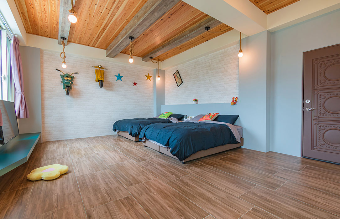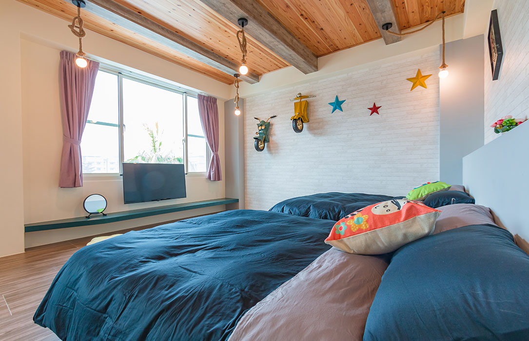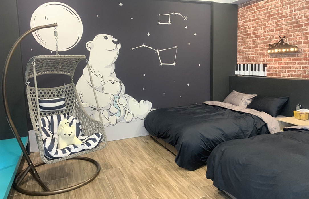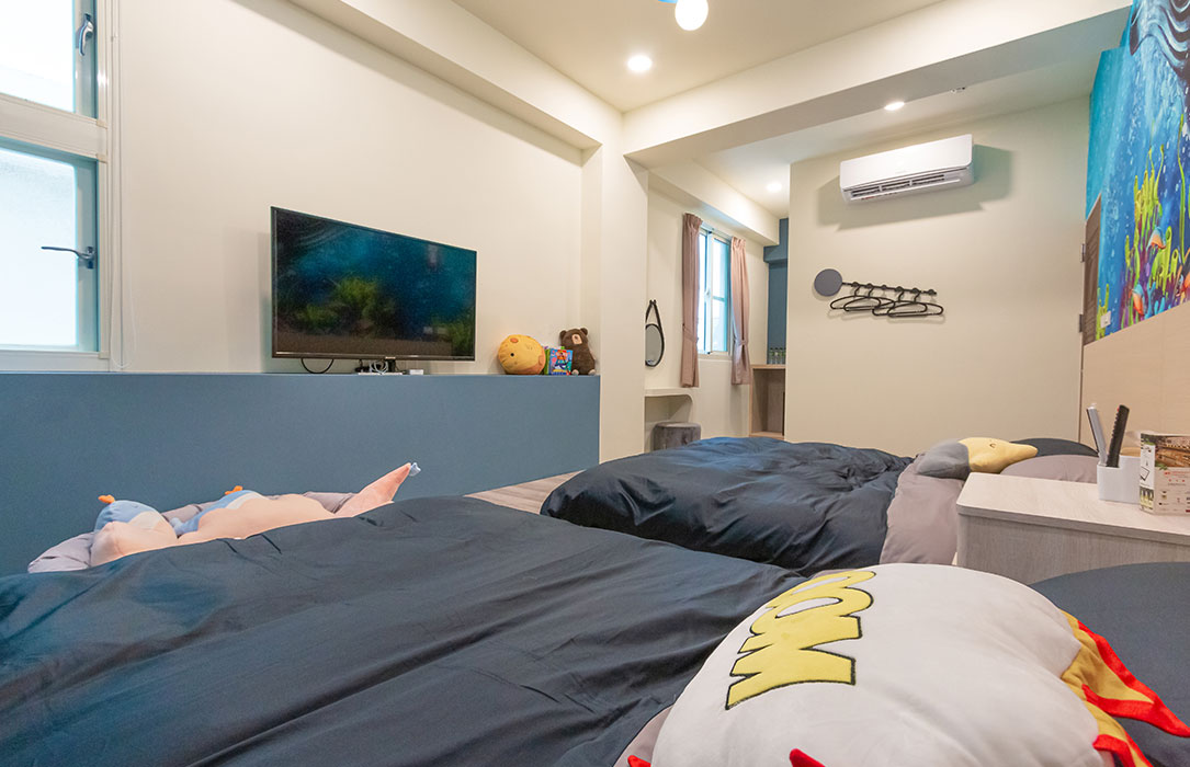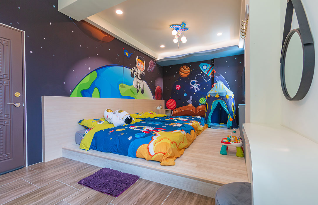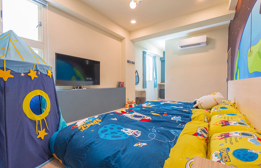 房間更有不同主題,小男生最愛的摩特車房、太空人親子房,小女生夢幻的美人魚親子房等,跟著孩子再過一次童年。