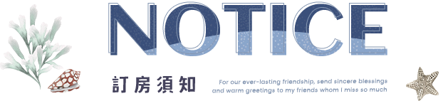 ●  維護住宿品質,請依房型人數進住,如需加人,請事先告知。